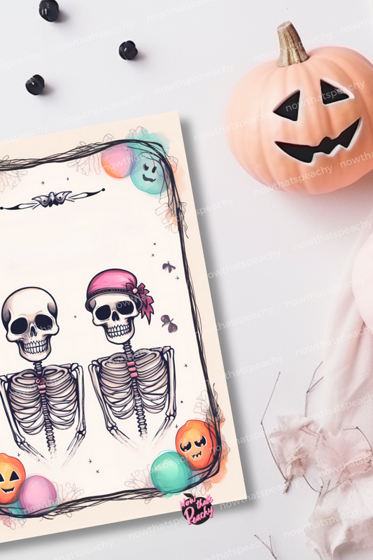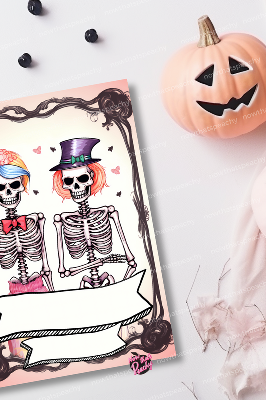 Skeleton Couple Invite Blank Template Printable Halloween DIY Tattoo Wall Art, Custom Greeting Card