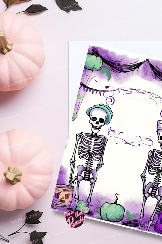 Skeleton People Blank Template Invite DIY Printable Halloween Tattoo Wall Art, Custom Greeting Card