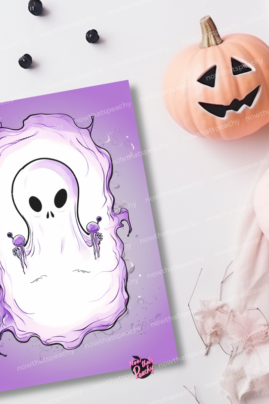 Ghost Invite Blank Template Printable Halloween DIY Spooky Wall Art, Custom Word Pastel Goth Greeting Card SVG PNG Door Sign