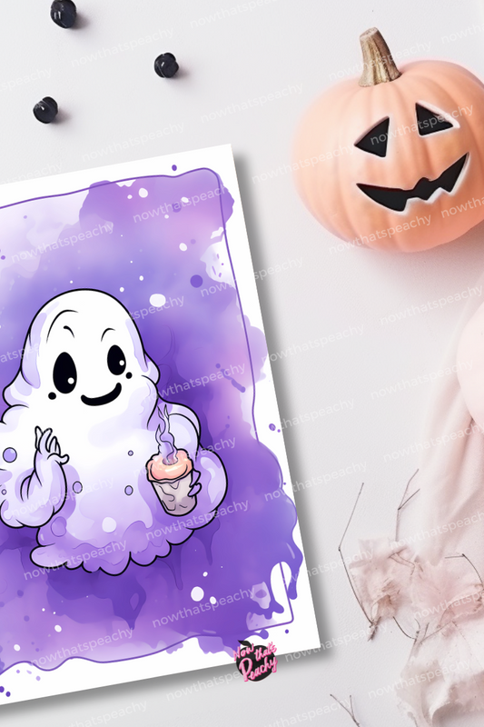 Watercolor Cute Ghost Invite Blank Template Printable Halloween DIY Kawaii Wall Art, Custom Greeting Card