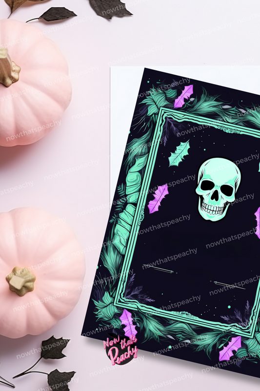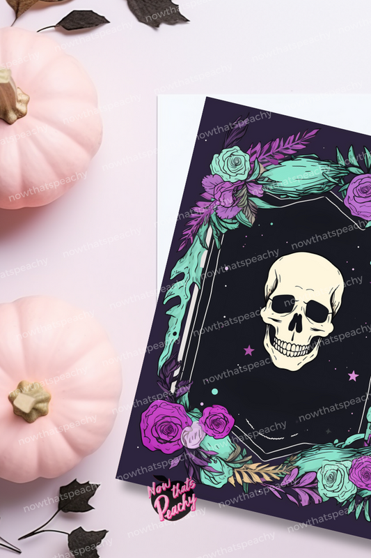 Halloween Pastel Floral Skull Blank Template printoff digital DIY download