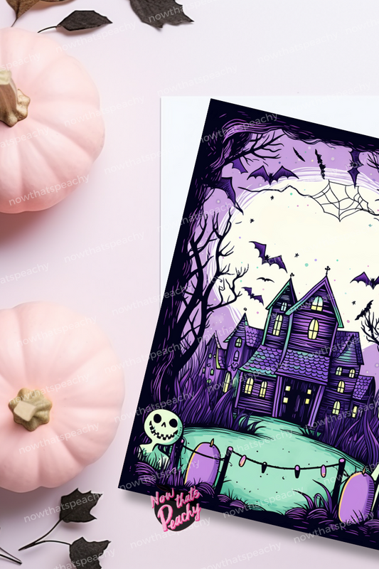 Pastel Goth Haunted House Blank Template printable digital DIY download