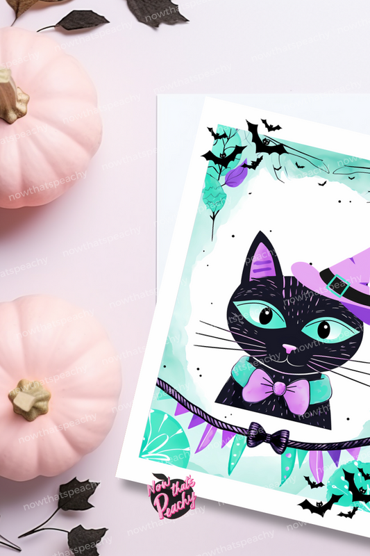 Halloween Witch Cat Blank Template printoff DIY Poster Invitation Card