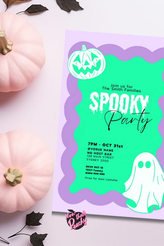 Wavy Halloween Invite Editable Printable Ghost Invitation Spooky Party template Instant Download