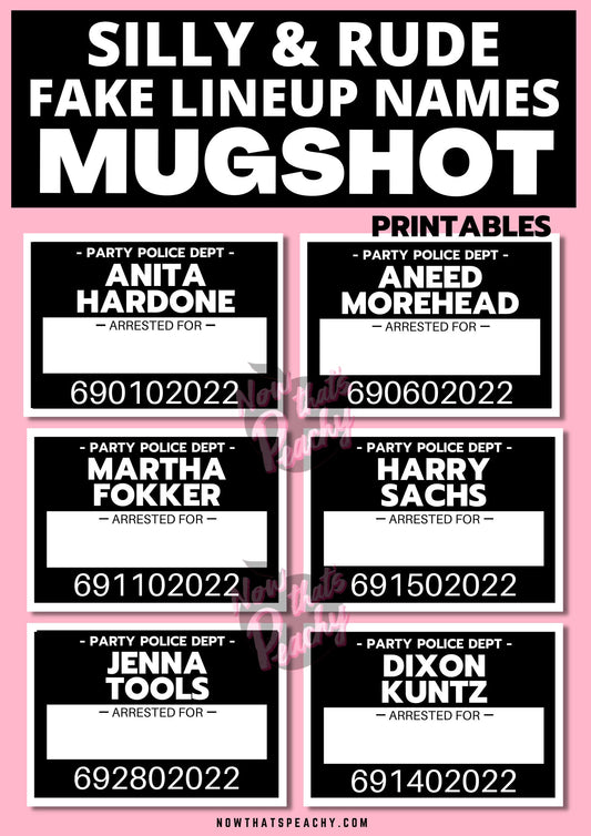 Funny Names MUGSHOT Photo booth PRINTABLES 24 Rude police crime lineup party sign Props Birthday Parties photobooth instant download DIY event