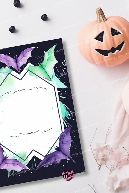Pastel Goth Bats Watercolor Blank Template for Cards, Posters, Menus, Invitations, Flyers