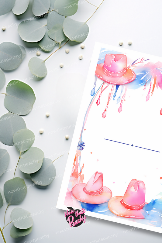 Western Cowgirl Hats Watercolor Blank Template, DIY Bachelorette Birthday Party Printable