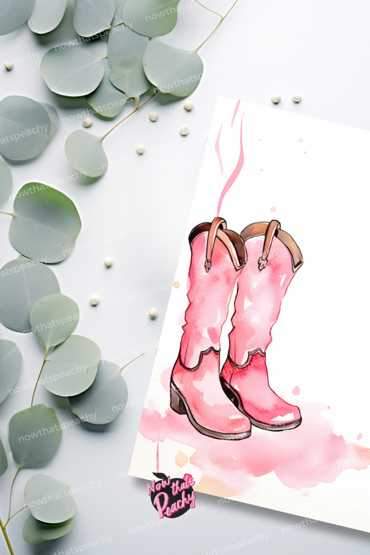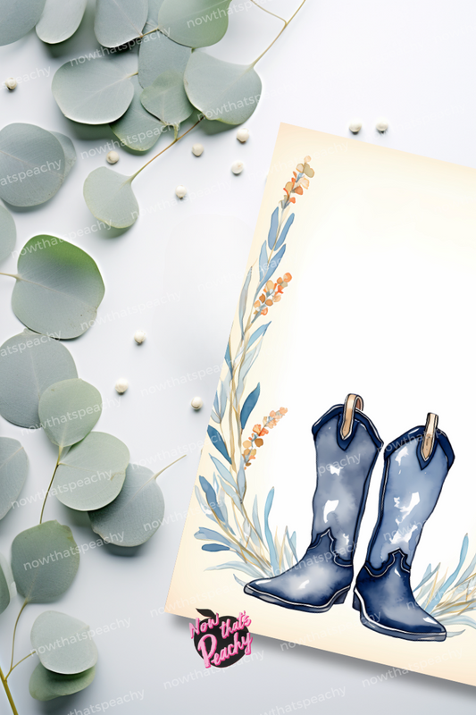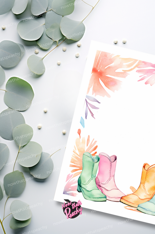 Pastel Western Boots Watercolor Template Blank Page Border Frame Invite DIY