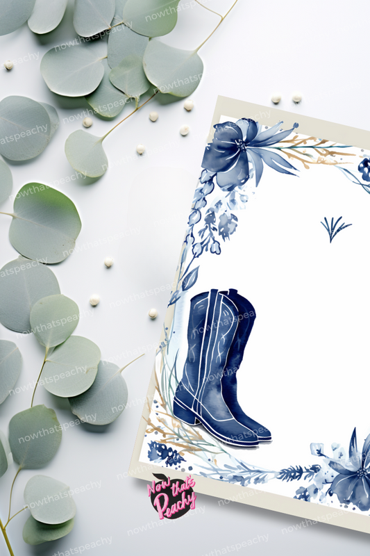 Country Western Boots Watercolor Blank Template Birthday Bachelorette Baby Shower Fundraiser