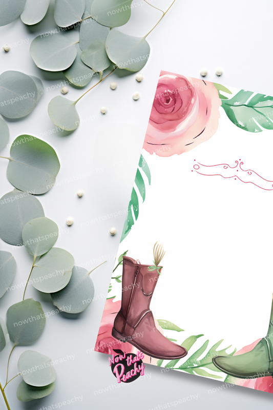 Rustic Cowgirl Boots Watercolor Template Blank Page Border Frame Invite DIY