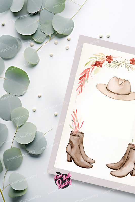 Boho Western Cowgirl Boot Hat Watercolor Blank Template Invite Wedding Bachelorette Birthday
