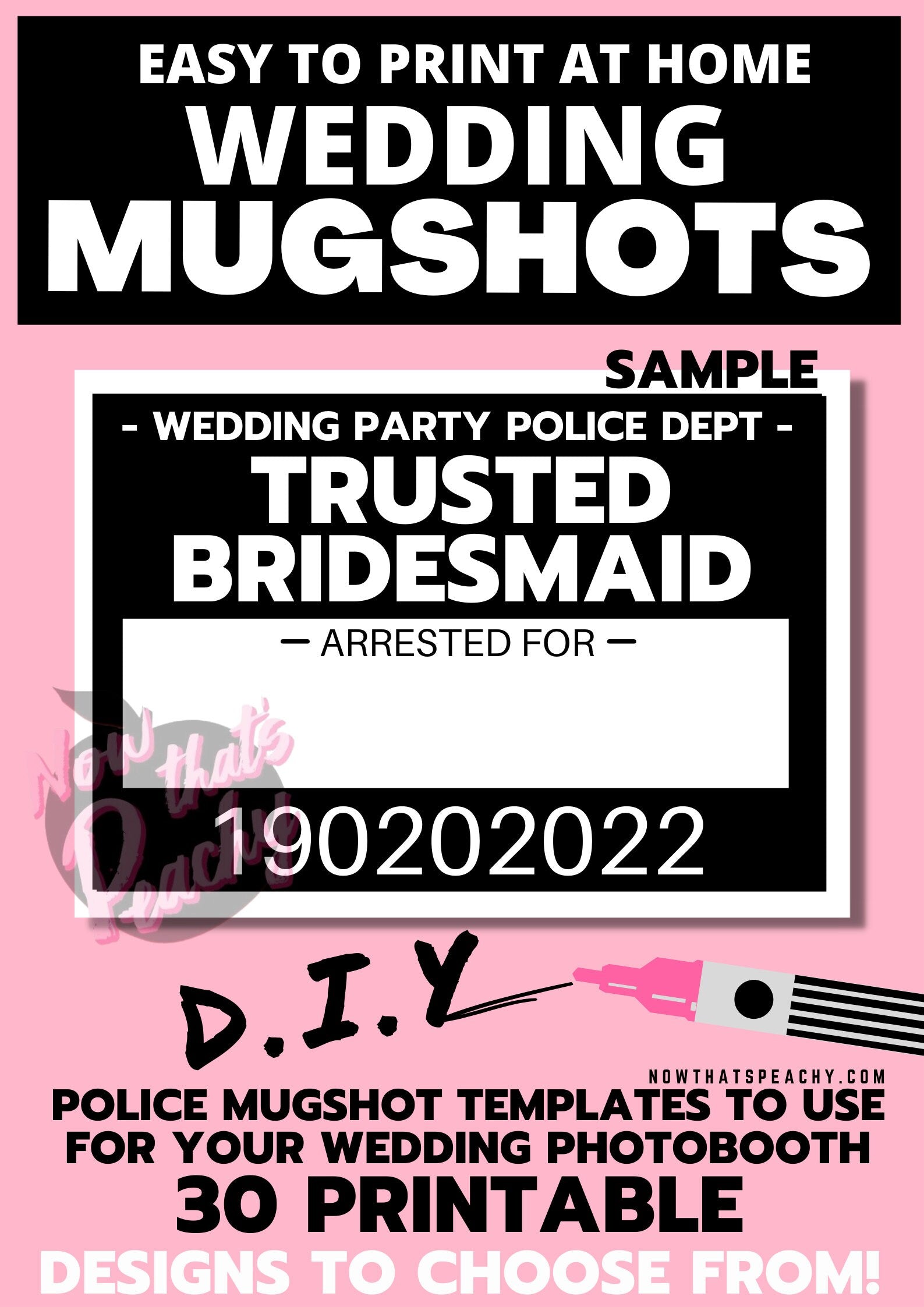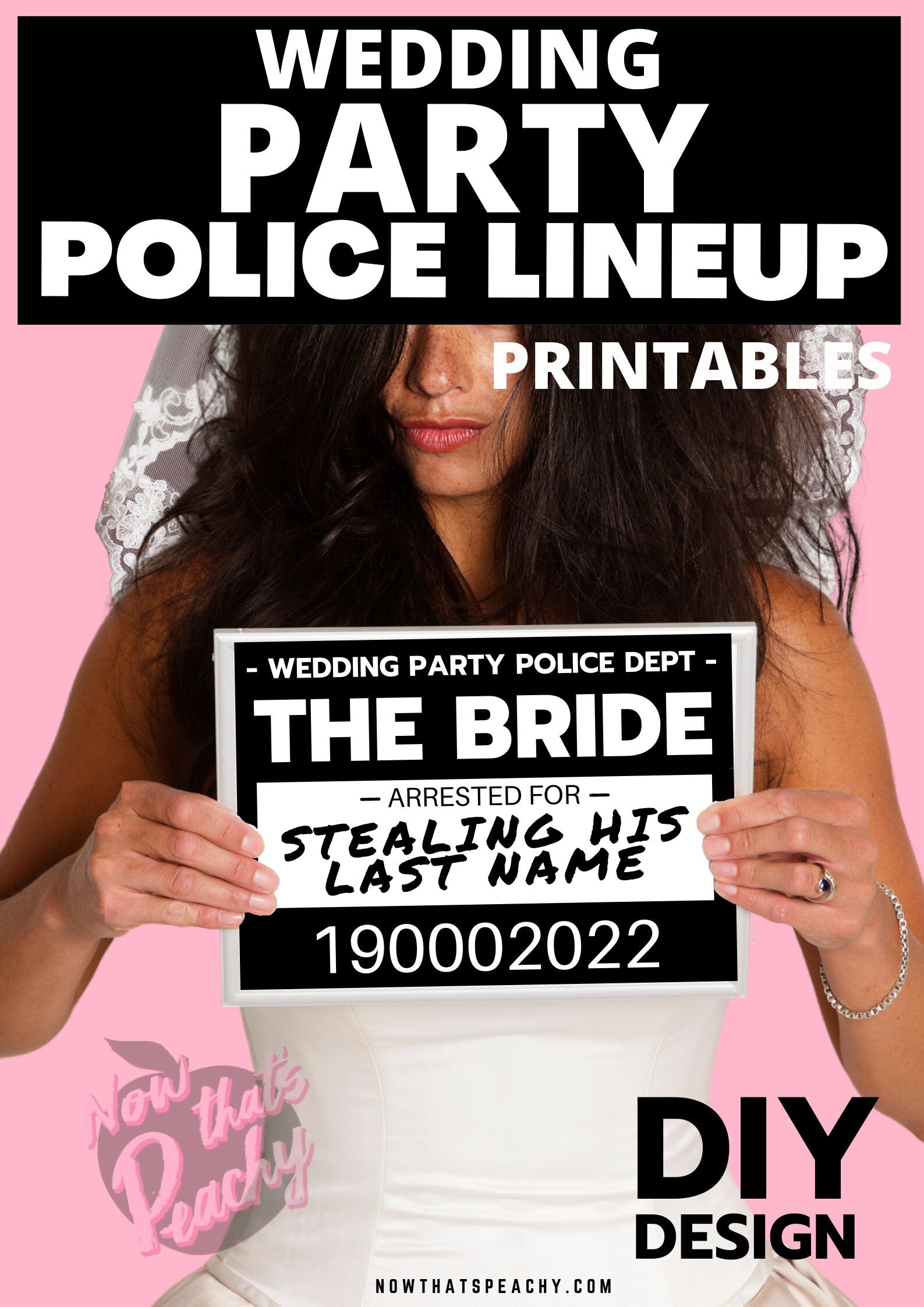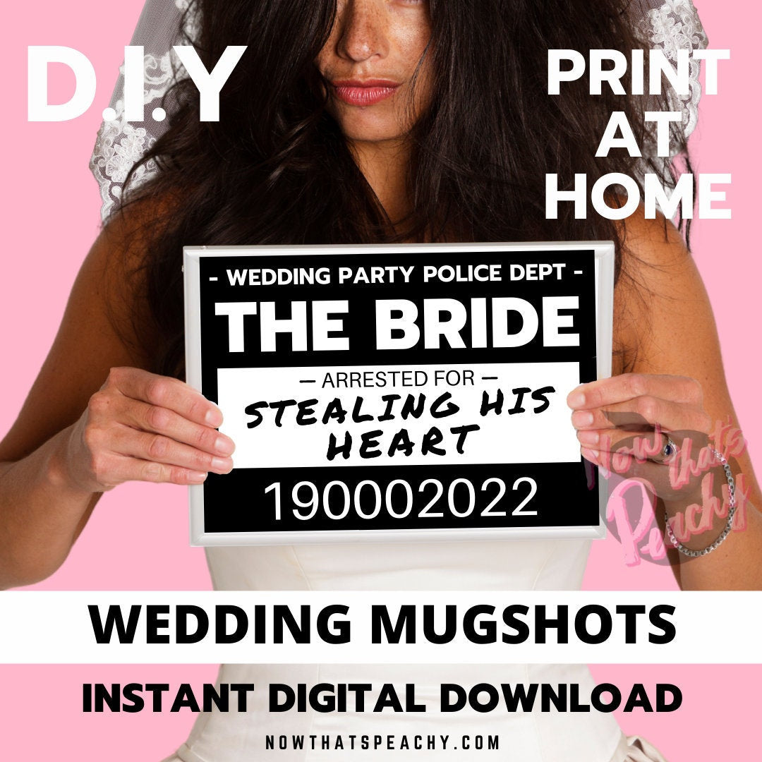 Wedding MUGSHOT Photo booth PRINTABLES 30 party Props Bride Groom Bridal Shower Parties police crime lineup fun unique modern photobooth pdf